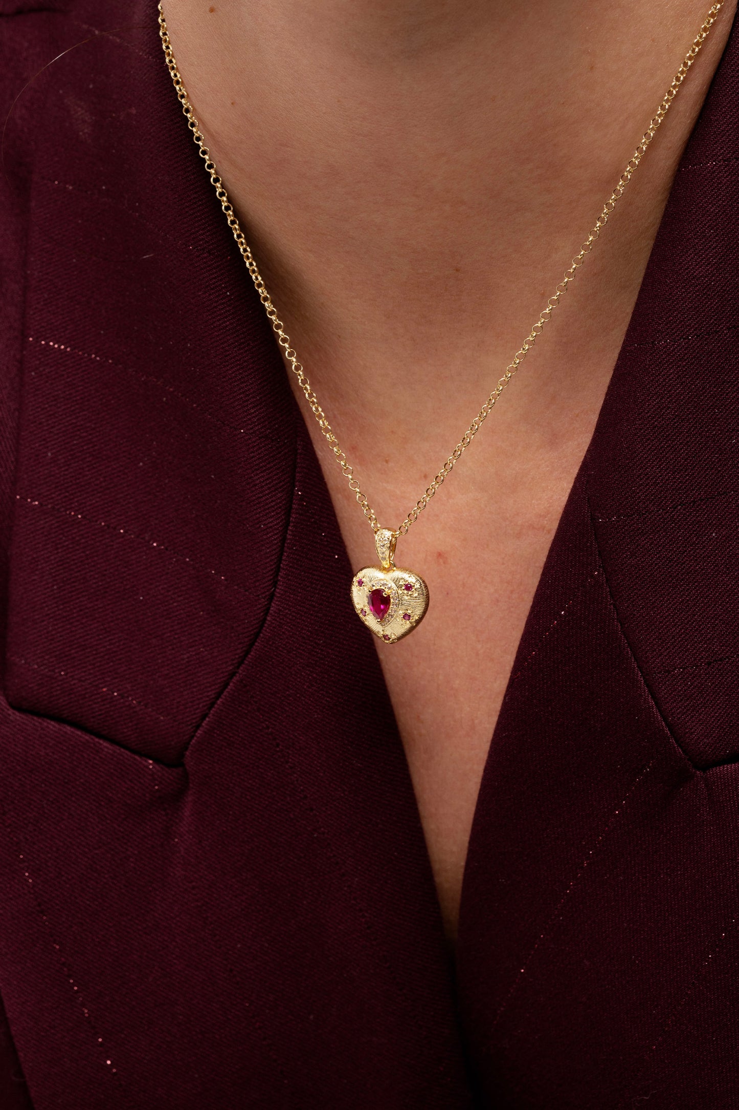 Collana in argento 925 e rubino Lucrezia: eleganza senza tempo con ciondolo a forma di cuore impreziosito da un rubino naturale al centro. La placcatura in oro 18 carati conferisce un finish lussuoso e duraturo, esaltando la profondità del rosso intenso della pietra preziosa. Un pezzo raffinato che combina la bellezza del rubino autentico con la versatilità dell'oro, ideale per occasioni speciali o per chi apprezza i gioielli di qualità. Perfetto come regalo significativo o come aggiunta sofisticata alla propria collezione.
