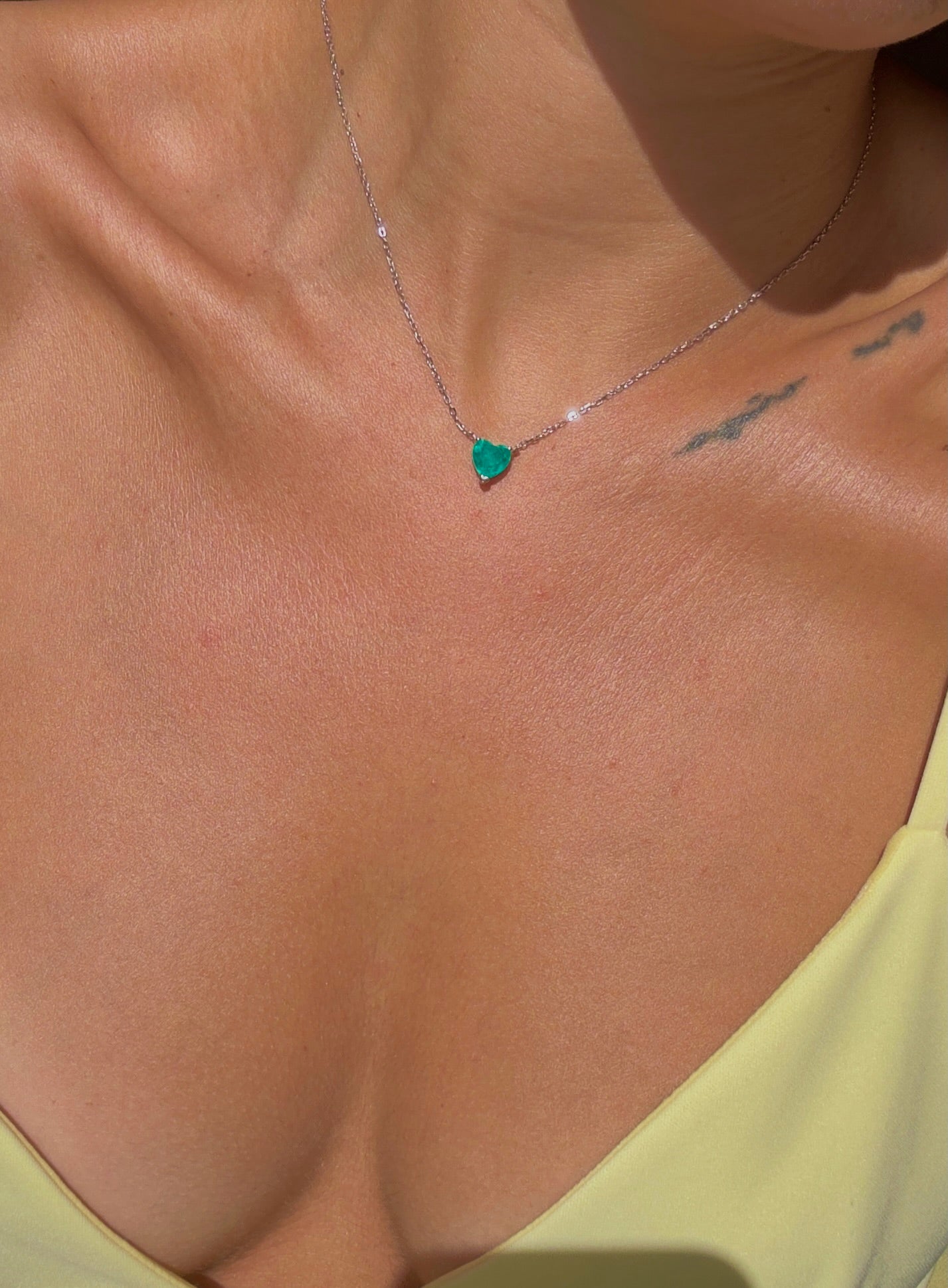 Elegante collana in argento 925 che combina raffinatezza e significato emotivo. Il pendente presenta un delicato cuoricino in quarzo lab grown, disponibile in una palette di colori vibranti che rispecchiano le tonalità naturali delle pietre preziose.