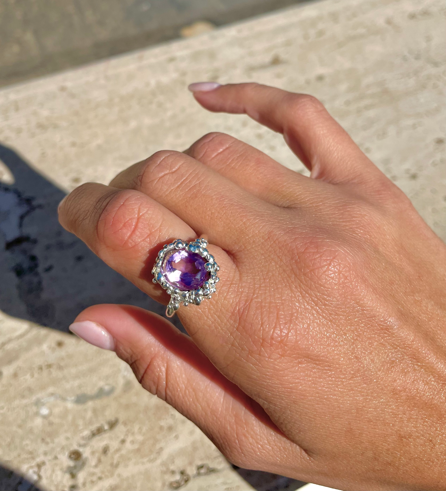 Anello con montatura fatta a mano in argento925 e pietra semipreziosa centrale