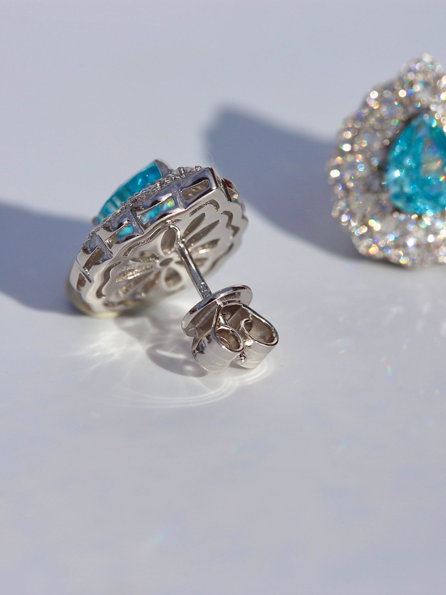 Orecchini base argento 925, con marchio attestante, con quarzo a goccia in acquamarina.