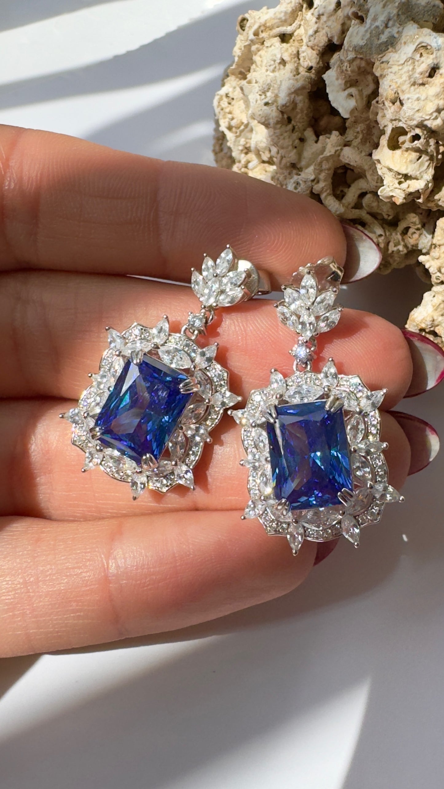 Orecchini pendenti Vittoria che incarnano l'eleganza principesca con una lavorazione raffinata e meticolosa. Caratterizzati da un quarzo blu di laboratorio al centro, circondato da cubic zirconie che catturano la luce con brillantezza. La base in argento 925 garantisce qualità e durabilità nel tempo. Un accessorio sofisticato per chi ricerca dettagli preziosi e un design senza compromessi, perfetto per occasioni decisamente un tocco di lusso .