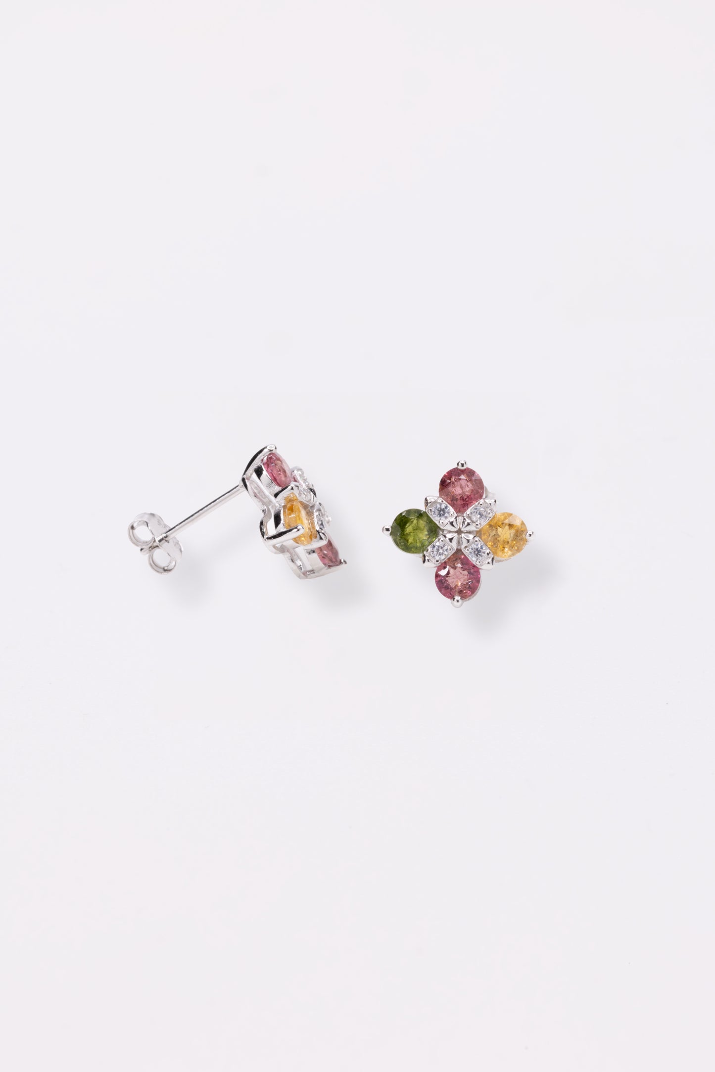 Delicati orecchini che catturano l'eleganza della natura. la montatura a forma di fiore è impreziosita da tormaline naturali dalle tonalità autentiche e variegate. Le pietre, selezionate per la loro bellezza organica, conferiscono carattere unico a ogni paio. La lavorazione artigianale esalta la geometria delicata dei fiori, creando un accessorio sofisticato che combina mineralità e design contemporaneo. Ideali per chi apprezza gioielli con una storia naturale, questi orecchini rappresentano un equilibrio perfetto tra semplicità formale e ricchezza materica.