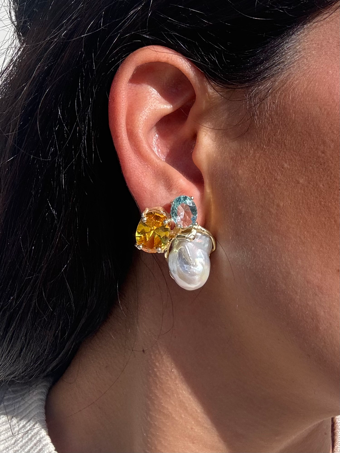 Orecchini in perla barocca con zirconie e base argento925 placcato oro.