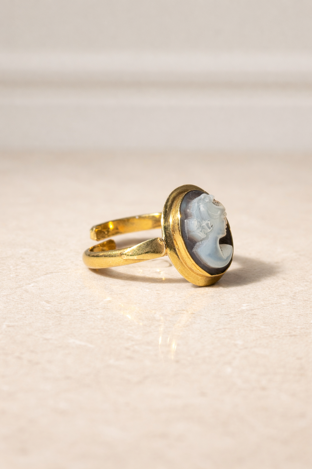 Anello in argento 925 placcato oro 18kt Cammeo liscio