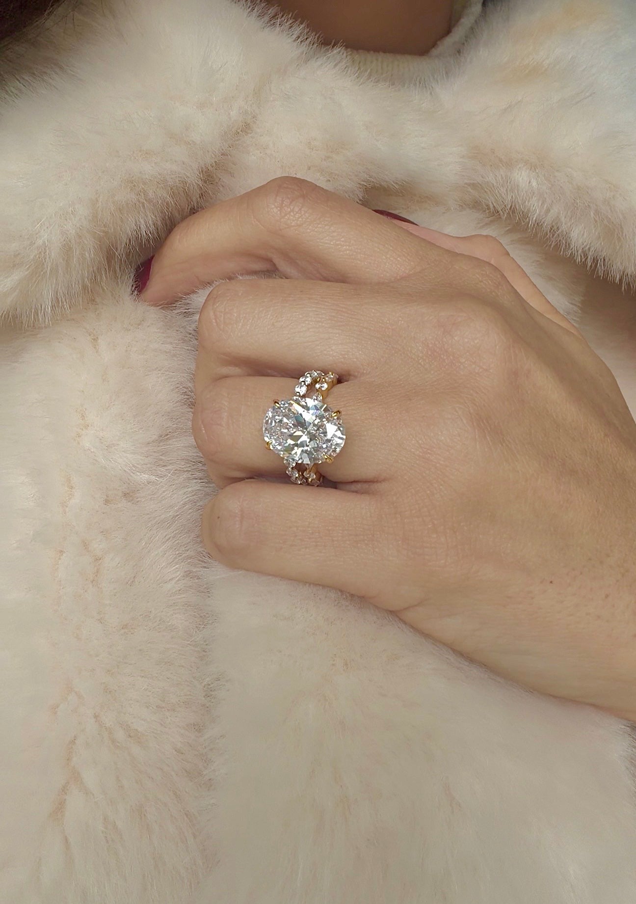 Anello in argento 925 che incarna eleganza contemporanea e raffinatezza. Il pezzo è caratterizzato da una splendida pietra di quarzo di laboratorio con taglio ovale al centro, che cattura la luce con brillantezza cristallina. Il gambo, finemente tempestato da quarzi di laboratorio in taglio rotondo, crea un effetto luminoso che si estende lungo tutta la circonferenza, conferendo al gioiello una presenza sofisticata e armoniosa. La qualità dell'argento 925 garantisce durabilità e un finish impeccabile. Un accessorio versatile che si distingue per il suo design elegante, perfetto per chi apprezza i dettagli raffinati e desidera un gioiello che combini bellezza e qualità artigianale.
