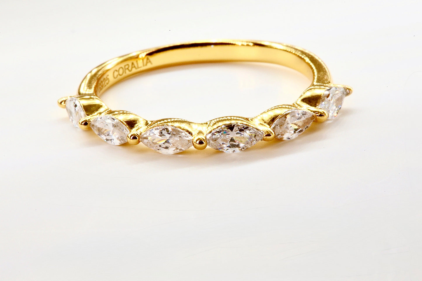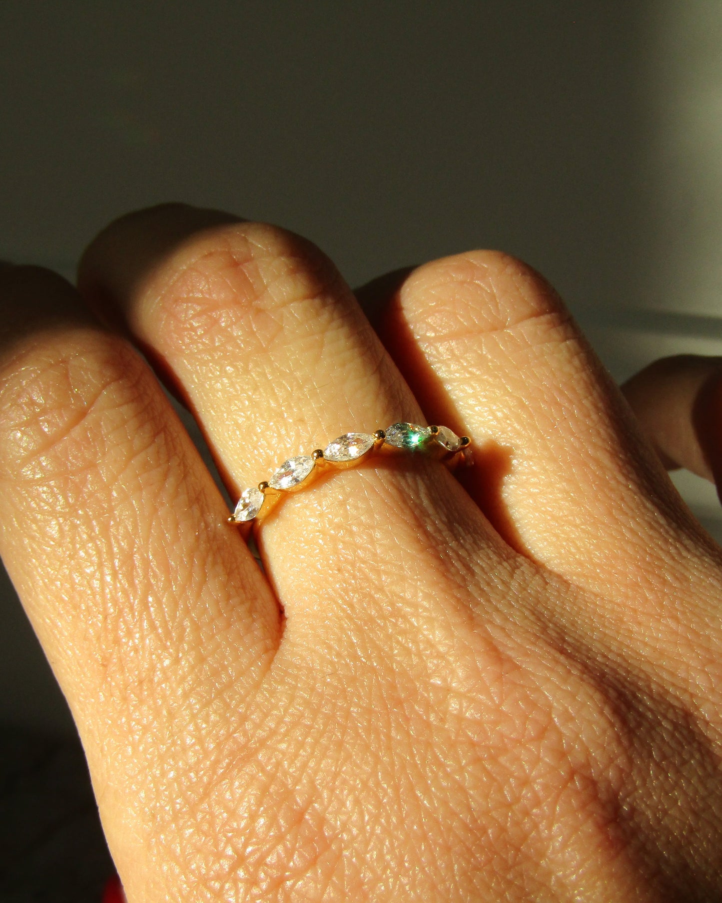 Anello in argento 925 placcato oro 24 kt con quarzi di laboratorio taglio marquise Fabula