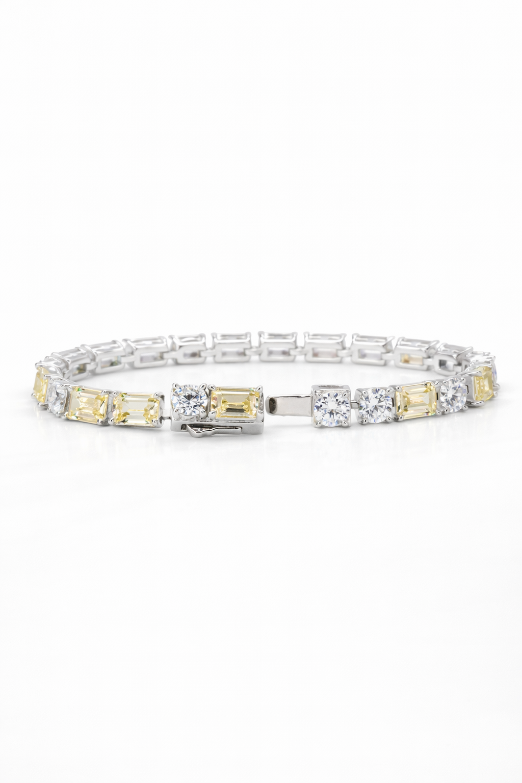 Bracciale Tennis Diana in Argento 925 con Pietre di Quarzo Sintetico Eleganza senza compromessi. Ogni pietra di quarzo di laboratorio brilla con la stessa luminosità e brillantezza di gemme naturali, garantendo un effetto scintillante che cattura la luce da ogni angolazione. Il design classico del tennis bracelet lo rende perfetto per occasioni speciali o per elevare lo stile quotidiano con un tocco di sofisticatezza. La qualità dell'argento sterling assicura durabilità nel tempo, mentre le pietre sintetiche offrono un'alternativa consapevole e accessibile senza sacrificare l'impatto visivo. Un accessorio versatile che completa qualsiasi look con grazia e raffinatezza.